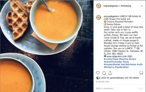 The indoor Kelowna Farmers’ Market is in full swing with squash and root veg right now, which is perfect for your homemade soup needs. Saying that, you can get someone else to help you – The Okanagan Table, Okanagan Grocery and Waterfront Cafe have deli fridges stocked with house-made locally inspired soups. If you’re by the Landmark Buildings, QB Gelato serves up a weekly soup feature, plus a waffle grilled cheese that would love to be dunked.