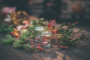 The beautifully intimate harvest table was arranged using branches and green things that we collected during our foraging session to transport our guest back and have a sense of place.