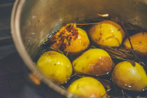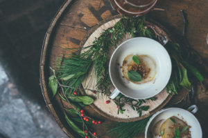 Forth Course: Forest Floor Roasted Pears with Foraged Spruce Yoghurt