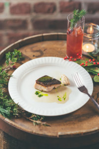 I plated it with a split pea and red lentil daal because it’s cool to showcase some of the cool things happening in other provinces. Waterfowl eat these peas, but our farmers have a hard time selling them because people tend not to know what to do with them, so they export them to countries like India. Canada is also one of the world’s largest producers of lentils, which means I don’t need to import any from India. So, it’s all kinds of ironic and a story I like to tell. We noticed that all the animals at Oulton’s were eating apples – I decided to add those to the plate, along with the huckleberries from our foraging trip to add a pop of acidity and sweetness. Finally, I’m someone who likes fire – danger is my middle name. I took the caribou moss and set it alight using a blowtorch to gently smoke the venison as the plates went out. I then giggled to myself so much that everyone turned around. But, I was excited and am very much like a small child.